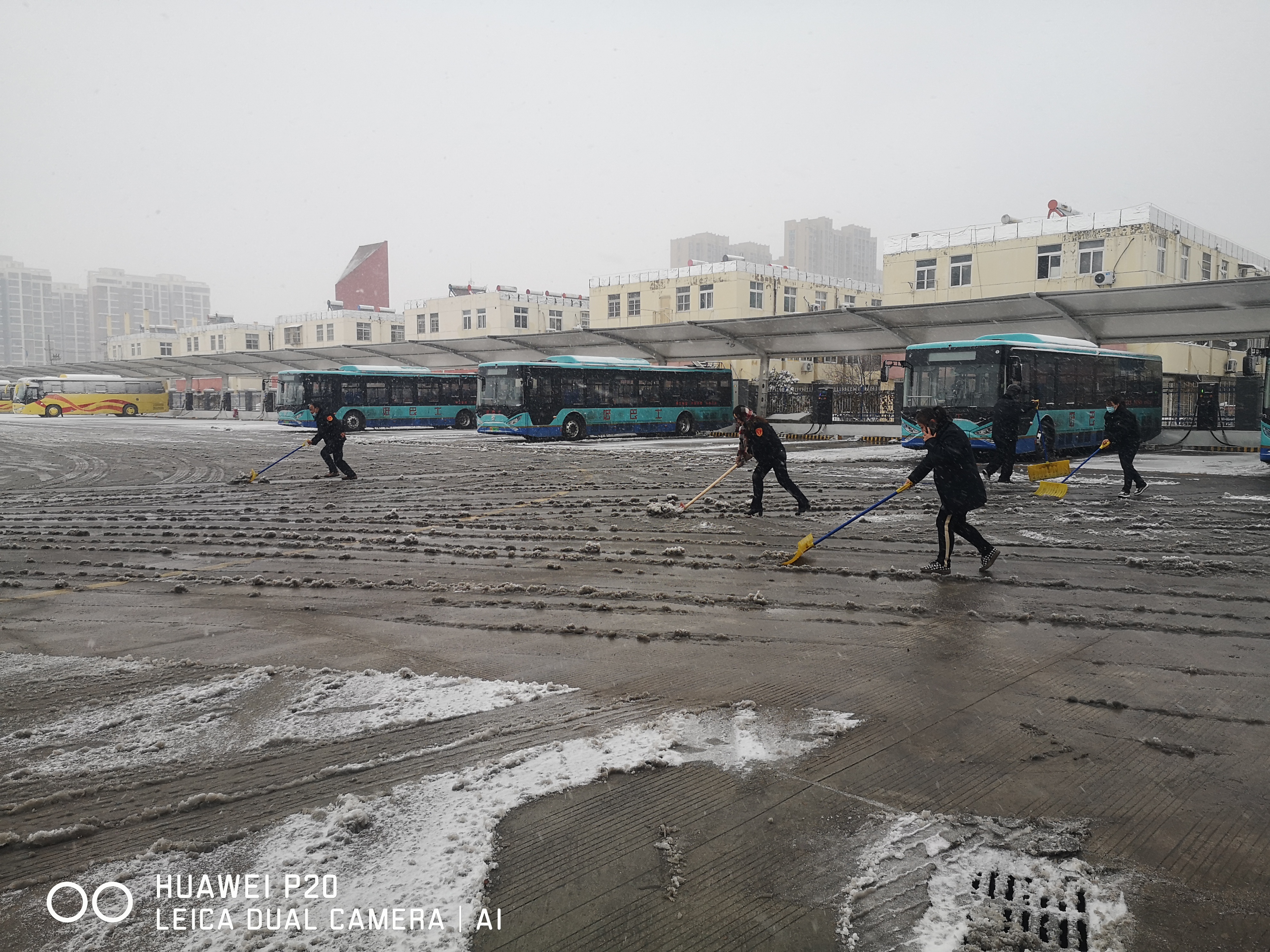雪情就是命令,公司上下严阵以待,安管部门完成所有车辆防冻液、防滑链设施的检修,对车辆方向制动、电路油路等关键部位进行逐一排查,确保车况良好,杜绝“带病车”上路营运;维修公司提前储备轮胎、蓄电池等冬季易损配件,备足防冻解冻设备和防滑链等抢修物品,确保发生故障随时响应、到达现场抢修;一线营运部门及时调整线路班次,加大运力保障力度,针对站点出现的结冰积雪情况,迅速组织站点人员集中清扫,撒盐化雪,确保车辆顺利发班;稽查人员密切关于道路交通实况,全天候上路动态监查市区桥梁、易结冰路段,联动公司GPS智能调度中心随时发布恶劣天气预警信息、线路走向调整动态调度指令。