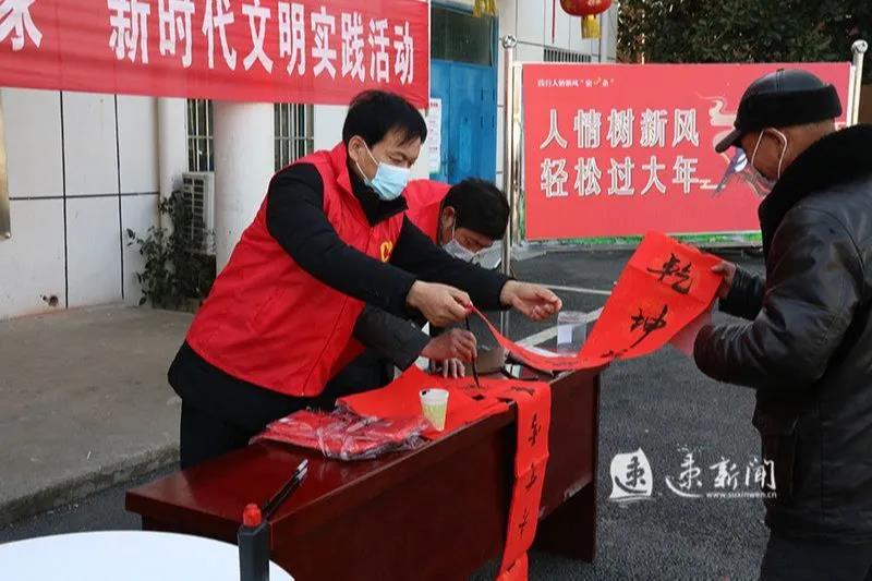 泗阳县临河镇书法志愿者服务队协办的身边好人送“新风”义务书写春联活动;