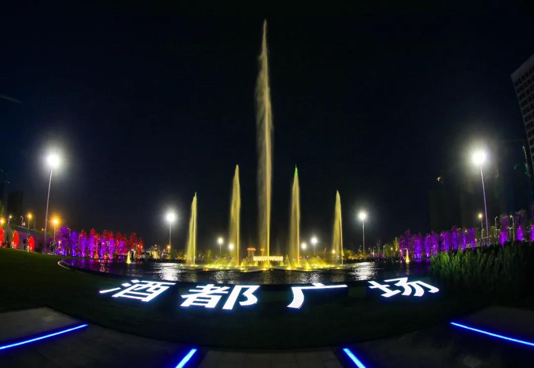 酒都广场喷泉“炫” 市民游客打卡“热”