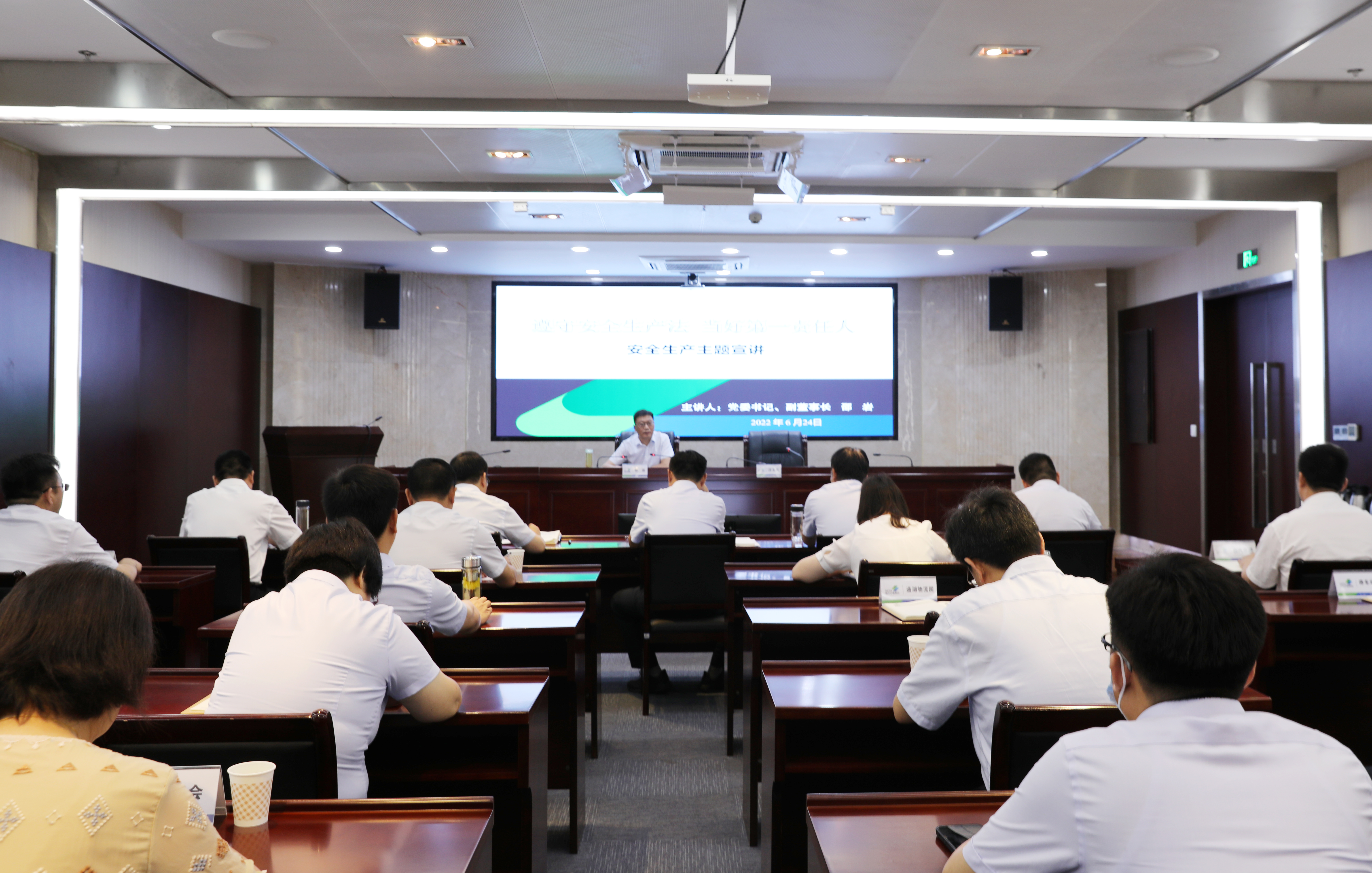 党委书记、副董事长邵岩以“遵守安全生产法 当好第一责任人”为题作安全生产专题宣讲,动员集团上下以守初心担使命的政治自觉和政治担当,始终把安全生产工作摆在首要位置,从严从实落实安全生产主体责任,以实际行动迎接党的二十大胜利召开。集团副总经理汪卫东主持会议。