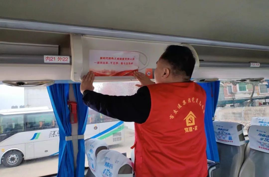 学习会上,全体人员集体观看《领航:踔厉奋发》视频,学习《习近平:为实现党的二十大提出的目标任务而团结奋斗》等文件精神。会后,组织党员在车内张贴党的二十大精神主题标语,“新时代的伟大成就是党和人民一道拼出来、干出来、奋斗出来”等金句在车内熠熠生辉,将深入学习宣传贯彻党的二十大精神以直观、新颖的方式融入旅客出行环境中,把长途汽车打造为宣传党的二十大精神的流动课堂。