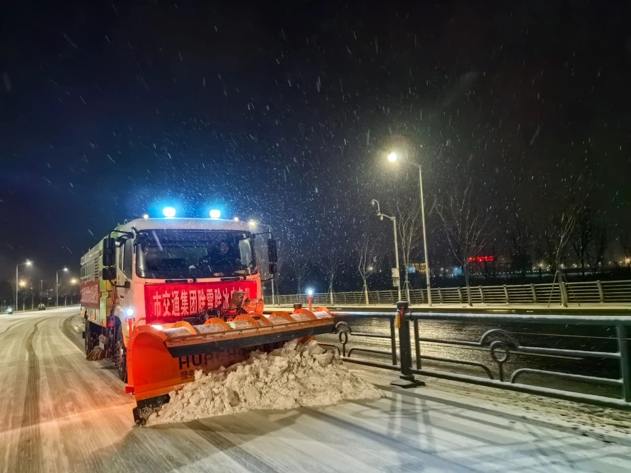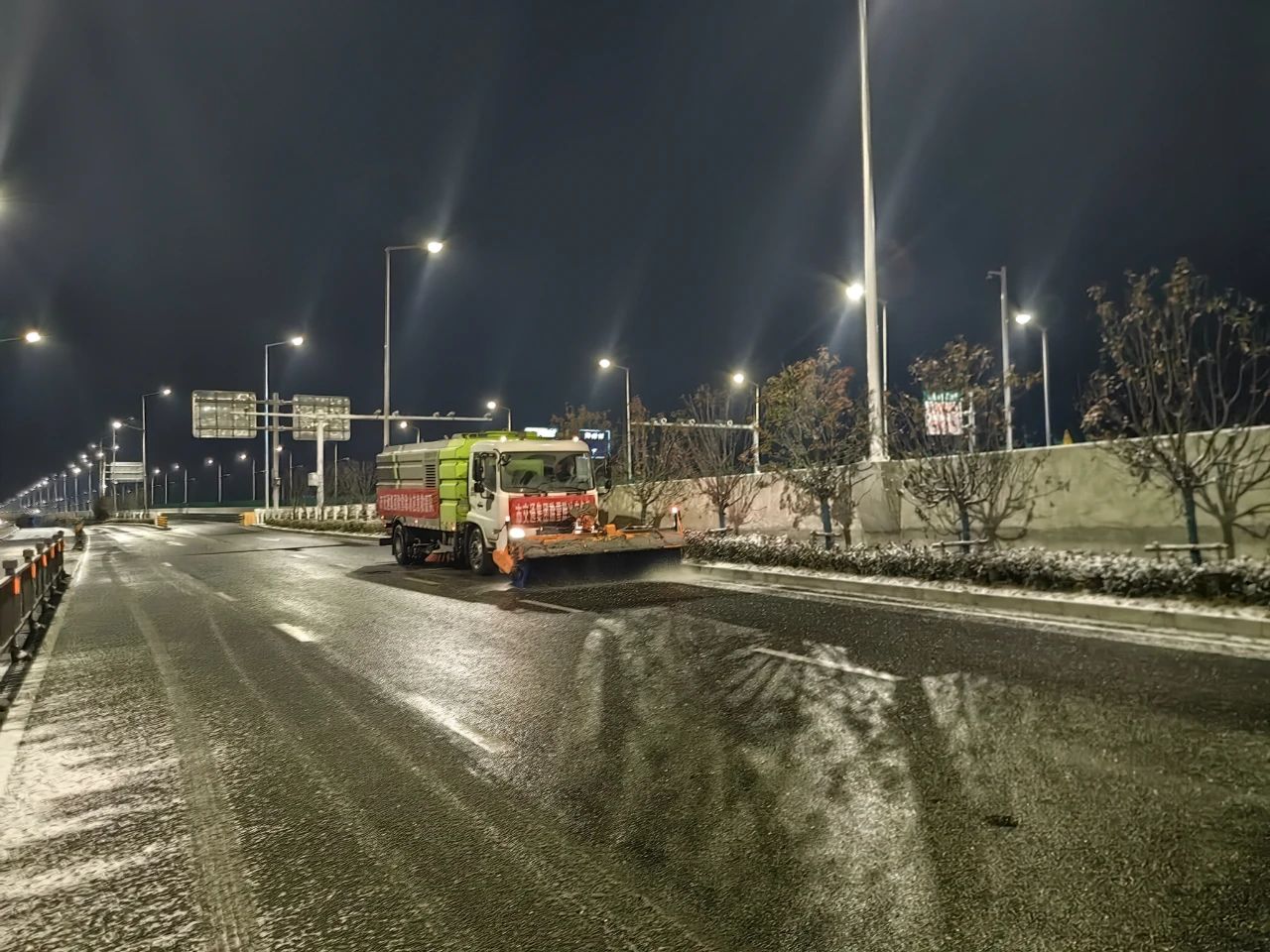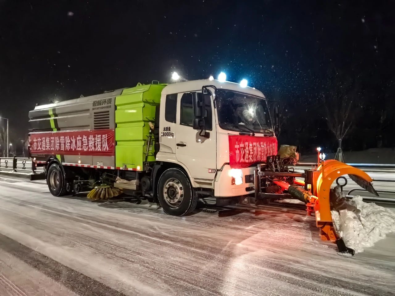 截至今早7点集团共出动除雪融冰应急保障人员120余名滚雪车、铲雪车、巡查车融雪剂撒布机等各种扫雪机械28台共消耗融雪剂约170余吨