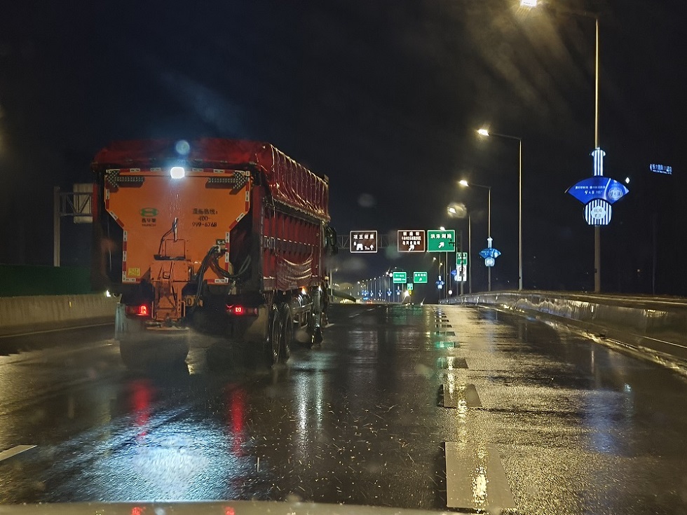 宿迁交建立即启动雨雪冰冻天气应急预案,出动机械70余辆、人员180人。针对管养道路不同路况特点制定对应处置方案,第一时间对主要路段进行预防性融冰撒布处置,对结冰路段启用热水喷洒和滚雪涮跟扫、人工辅助散盐的措施,积极组织人员对道路进行破冰除障,确保车辆进出安全。同时,对道路标志、路灯等设施进行检修和维护,提高夜间行车可见性和安全性。