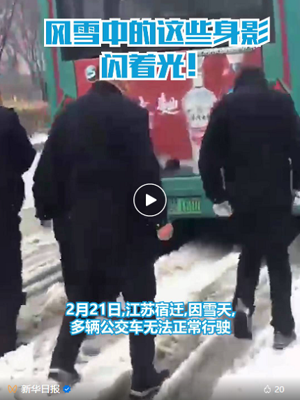 当公交车因积雪难以前进,乘客、路过市民和周边公交场站工作人员,从四面八方赶来助力。驾驶着这个车辆的司机,心头一定是暖的。