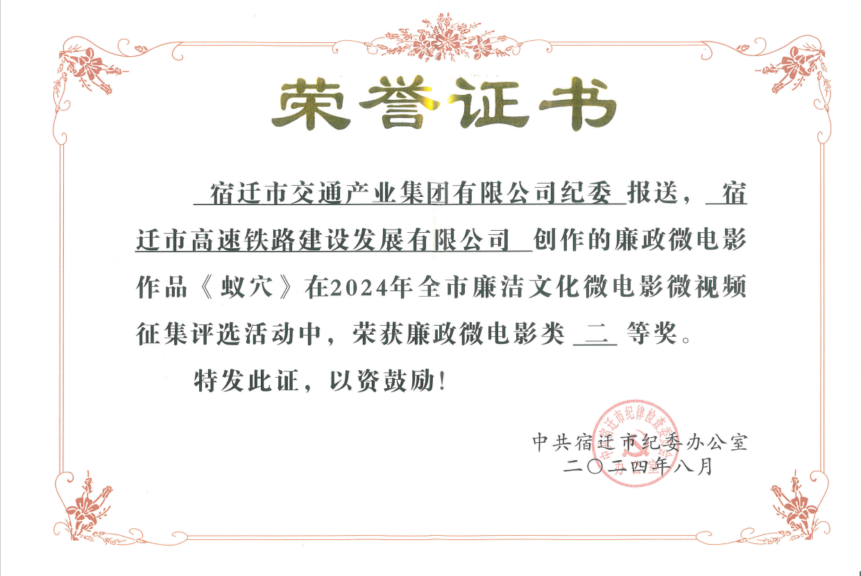 纪委制作打造的廉政微电影《蚁穴》,在全市56部廉政微电影作品中脱颖而出,荣获2024年全市廉政微电影二等奖,并将在“宿迁廉风”网站、微信公众号和速新闻、宿迁电视台、宿迁手机台等媒体平台进行展播。