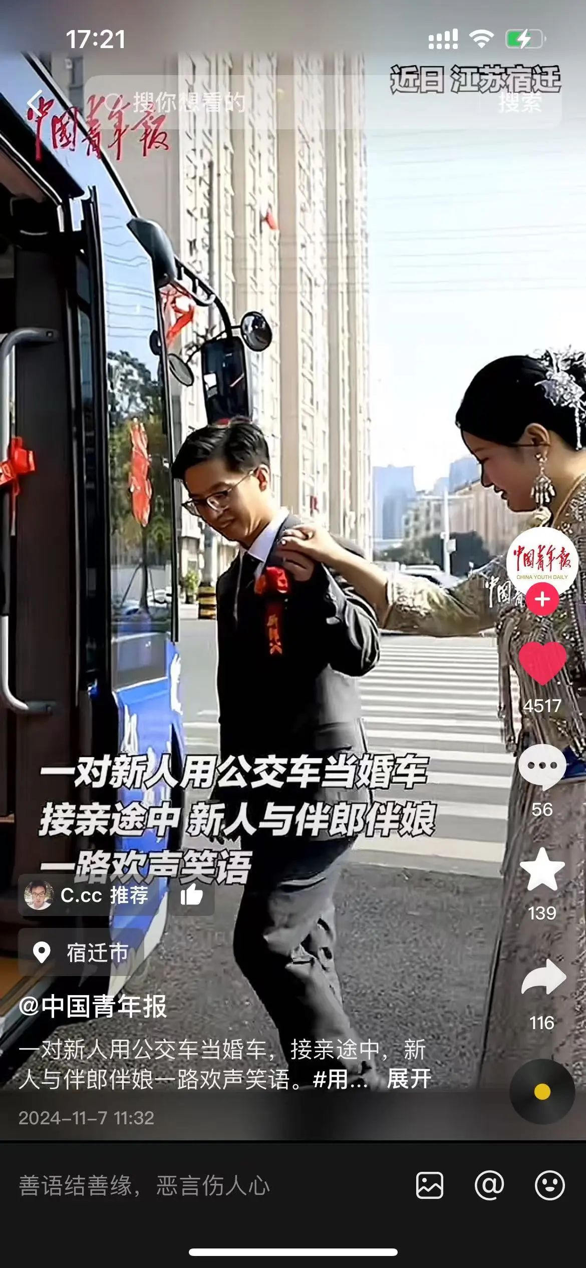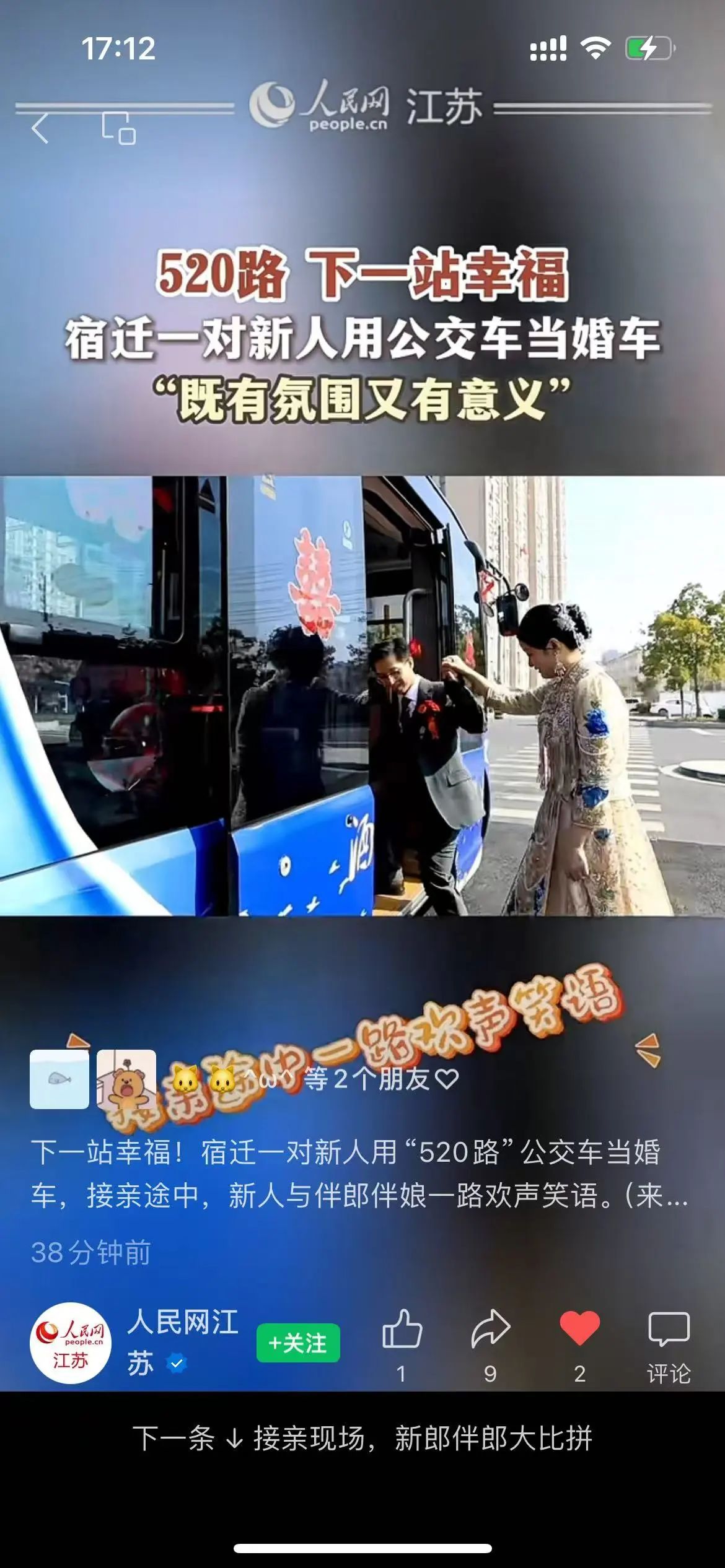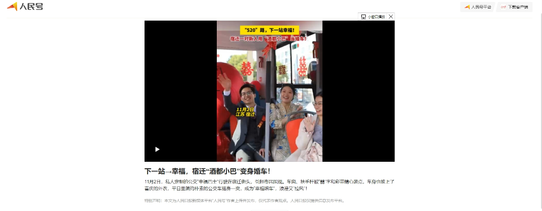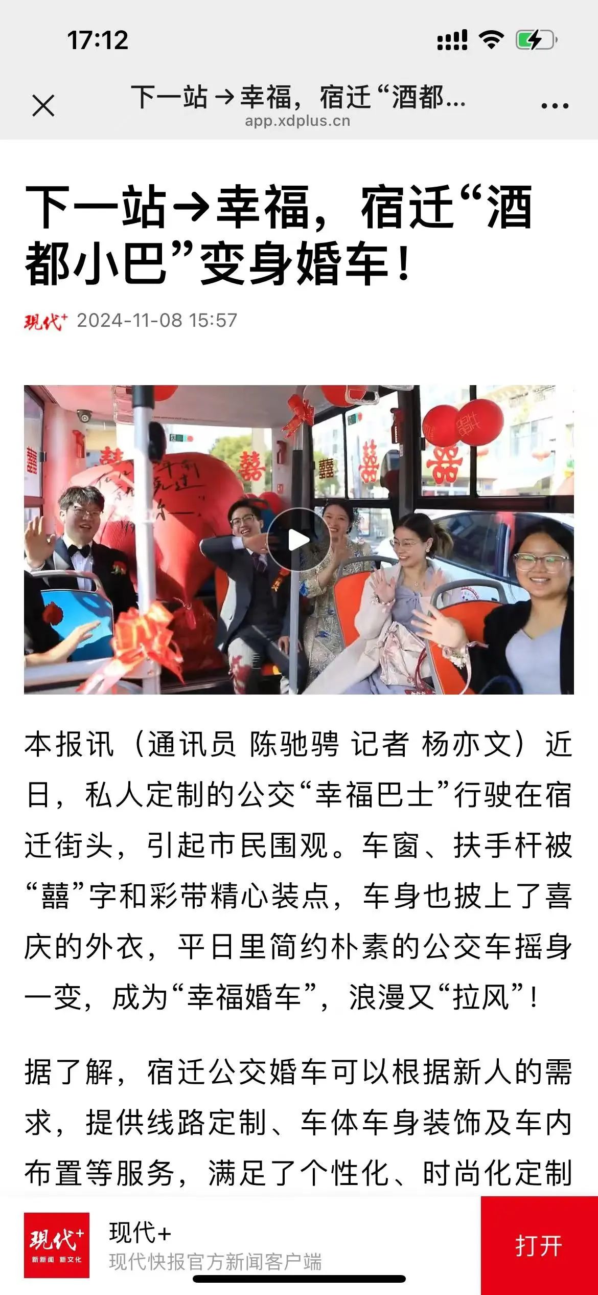 近年来,低碳出行、节能减排的理念逐渐深入人心,尤其在宿迁推出《人情新风“宿9条”》后,年轻群体更是将时尚、节俭、绿色环保理念融入婚事新办中。前两天,咱们宿迁就有一对新人,使用“酒都小巴”作为婚车,成为街头巷尾的美谈,更是在全网“火出圈”,先后被人民日报、中国青年报、现代快报等20余家主流媒体关注报道。
