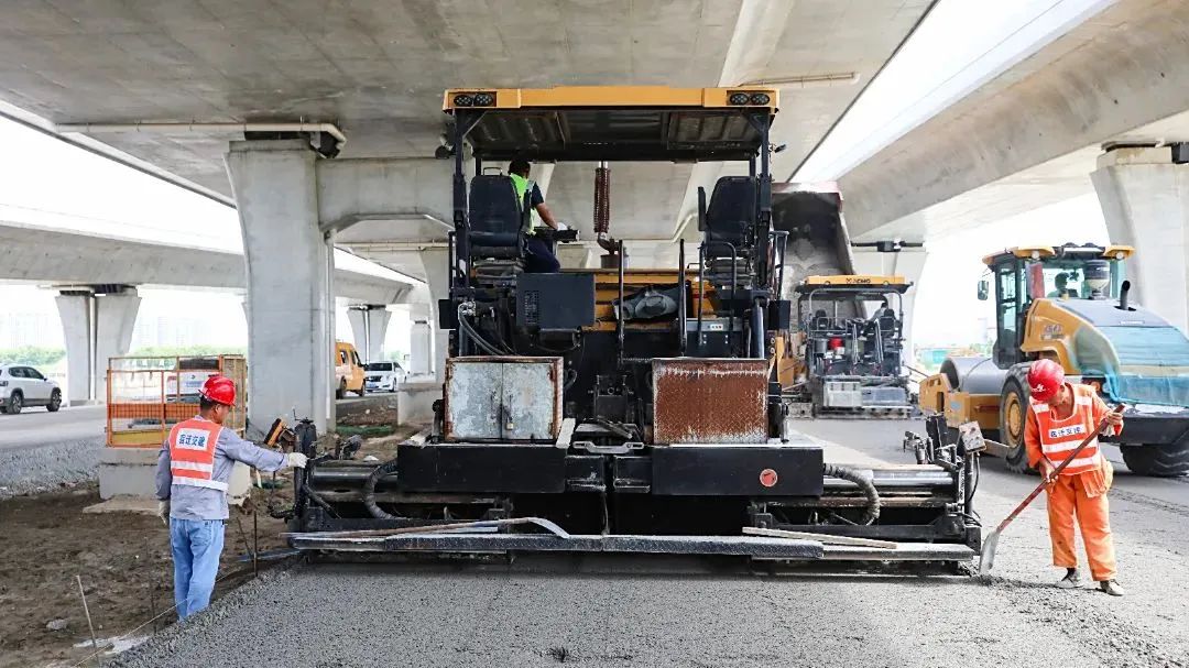 “交”战盛夏③酒都路快速化改造工程水稳摊铺火热进行中