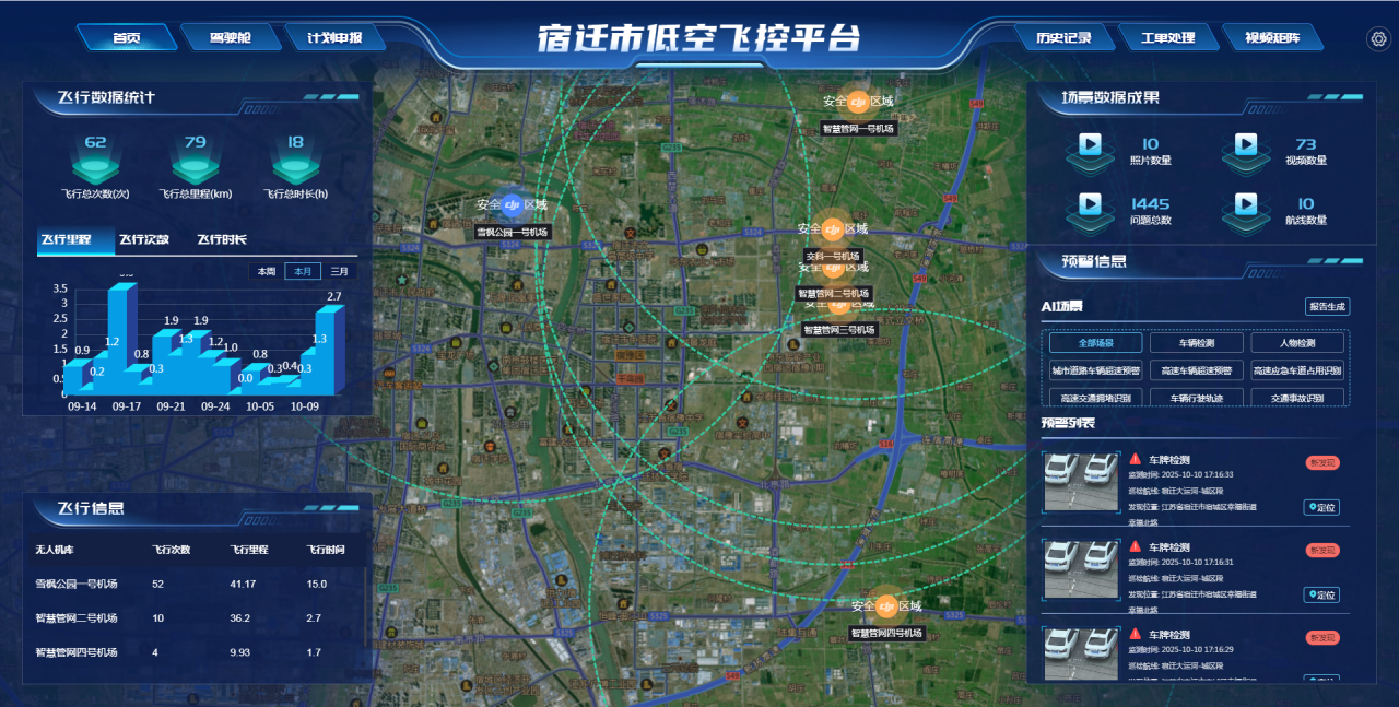 积极抢占低空经济新赛道,按照“1234N”发展路径,系统推进基础设施建设、应用场景市场开拓、产业链招引。目前,市低空飞行服务中心成立,无人机飞控平台、低空飞行服务平台完成部署,取得无人机运营合格证及13项应用场景甲级资质,快速路网、供热管网、扬尘治理等智能巡检项目常态化运行。