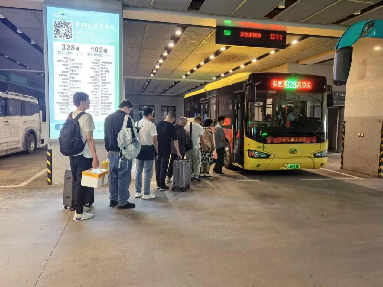 公交车在高铁宿迁站接送市民及来宿游客