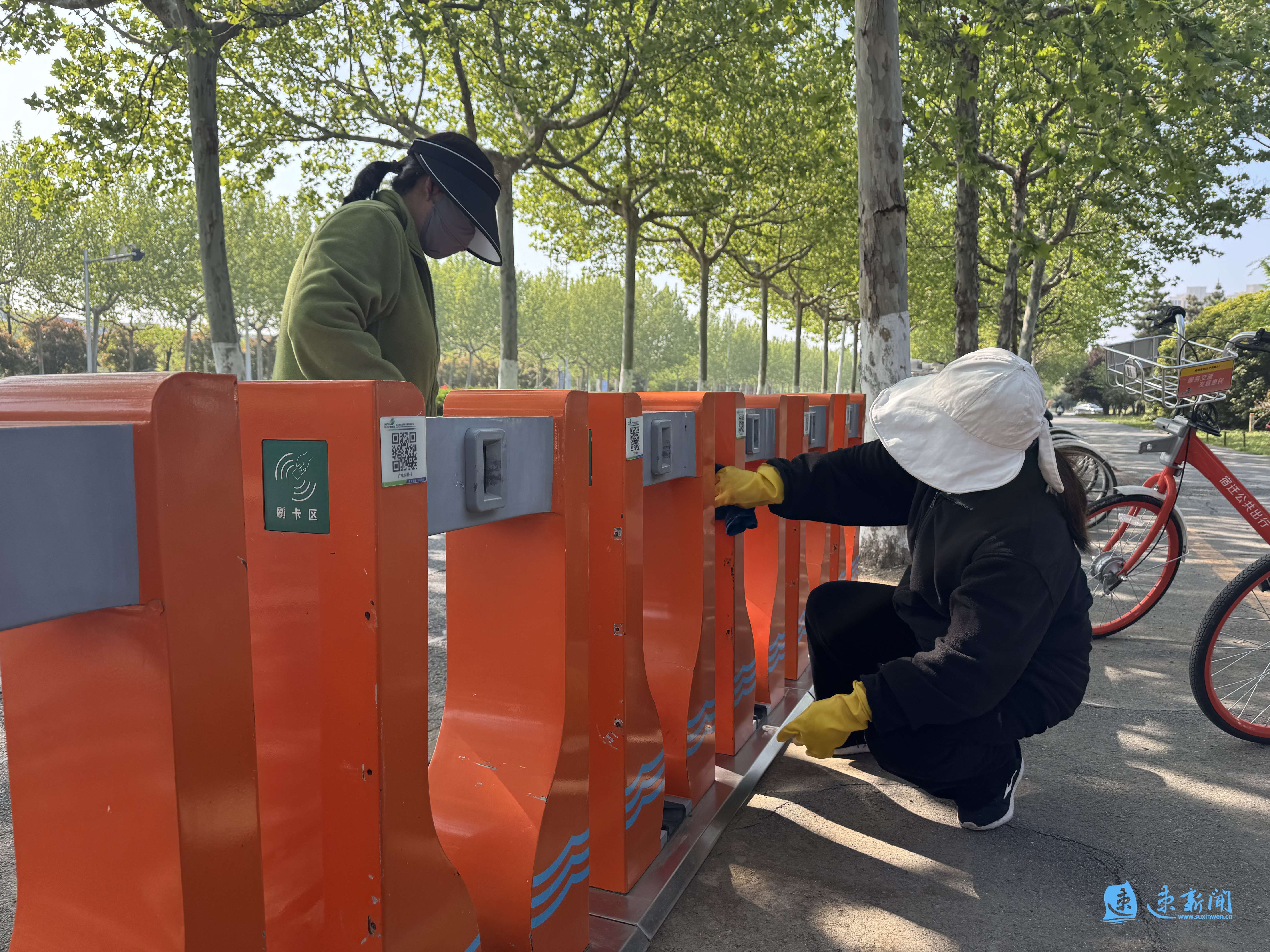 工作人员日常维护公共自行车站点