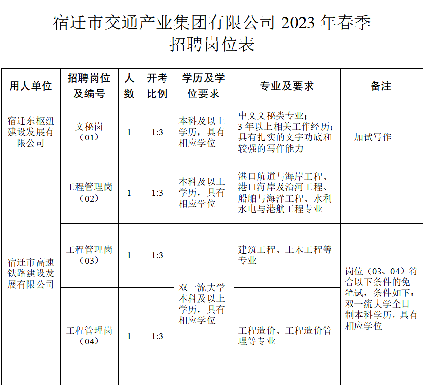 是宿迁市人民政府直属的国有企业,成立于1998年9月,注册资金10亿元,总资产超过300亿元。主要负责市政府授权范围内的国有资产投资、经营、管理,以及道路施工与养护、长途客运、城市公交、高铁场站、通用机场、汽车租赁、仓储物流、港口投资、土地开发等相关业务。集团现有控股子公司13家,参股企业7家。经营收入稳定、效益良好。为满足业务发展需要,现面向社会公开招聘业务工作人员。